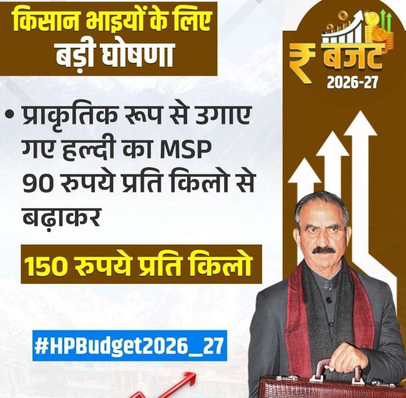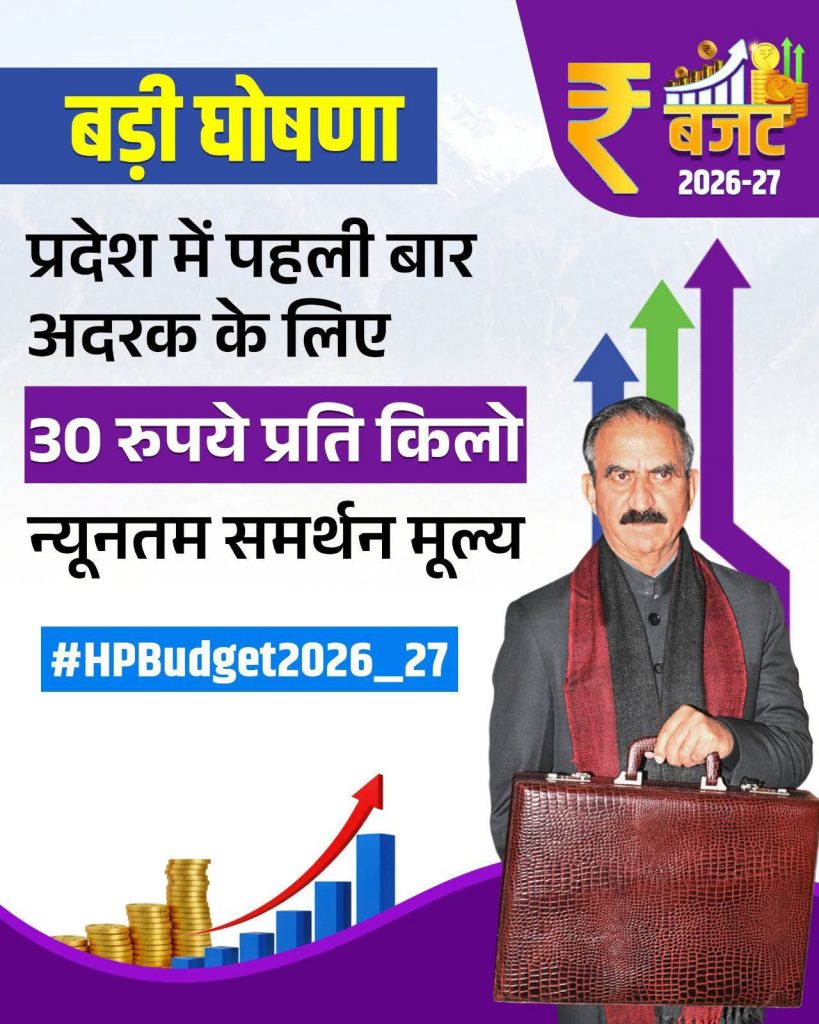 हिमाचल प्रदेश सरकार राज्य के किसानों को उनकी पैदावार को बेचने में आने वाली समस्याओं के समाधान के लिए एक ‘किसान गारंटी आयोग’का गठन करेगी।इसके अलावा सरकार ने किसानों की आमदनी बढ़ाने की दिशा में एक बड़ा कदम उठाते हुए हल्दी के न्यूनतम समर्थन मूल्य में 60 रुपए प्रति किलो की महत्वपूर्ण वृद्धि की घोषणा की है।अब हल्दी का समर्थन मूल्य 90 रुपए से बढ़ाकर 150 रुपए प्रति किलो कर दिया गया है।इसके साथ ही अदरक के लिए भी 30 रुपए प्रति किलोग्राम का न्यूनतम समर्थन मूल्य निर्धारित किया गया है,जिससे विभिन्न जिलों के अदरक उत्पादकों को मूल्य का आश्वासन मिलेगा।