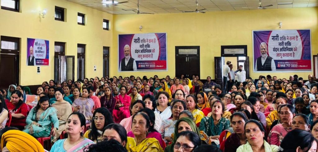 धर्मशाला:भाजपा प्रदेश अध्यक्ष डॉ.राजीव बिंदल ने गुरुवार को धर्मशाला में आयोजित “नारी शक्ति वंदन” कार्यक्रम में भाग लेते हुए कहा कि प्रधानमंत्री नरेंद्र मोदी के नेतृत्व में लाया गया नारी शक्ति वंदन अधिनियम भारतीय लोकतंत्र को और अधिक सशक्त बनाने की दिशा में एक ऐतिहासिक कदम है।इस अवसर पर धर्मशाला के विधायक सुधीर शर्मा,कांगड़ा के विधायक पवन काजल,सुलह के विधायक विपिन सिंह परमार,भाजपा जिला कांगड़ा अध्यक्ष सचिन शर्मा सहित अनेक वरिष्ठ नेता उपस्थित रहे।कार्यक्रम में डॉ(कर्नल) रीता डढवाल,डॉ.वासु सिंह,ज्योति चंदेल,सीमा चंदेल,अंजला कुमारी,शुभ्रा गुप्ता,शकुन,शीला सलूजा और रंजू रस्तोगी सहित बड़ी संख्या में महिलाओं की गरिमामयी उपस्थिति रही।
