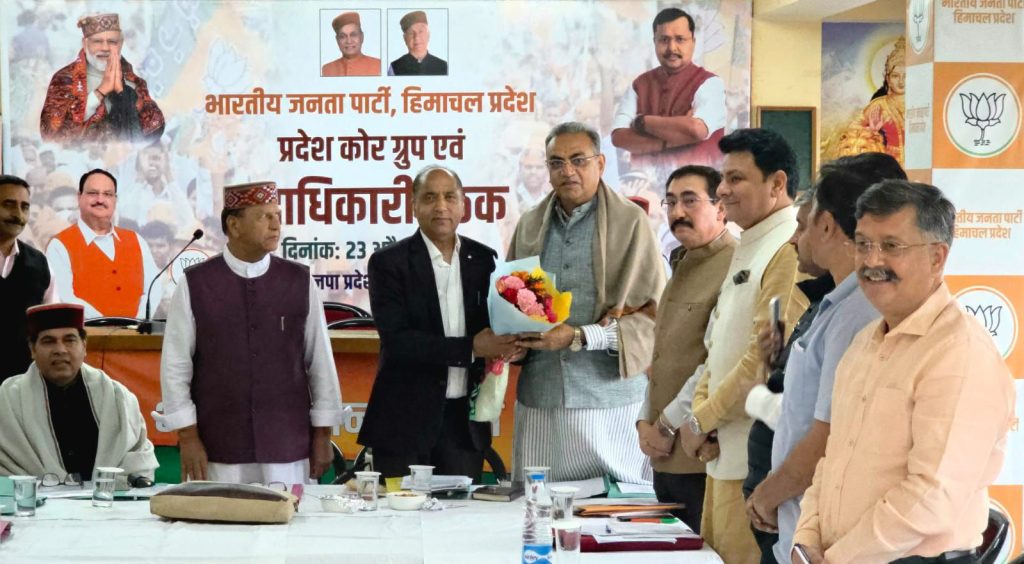 पार्टी नेताओं ने स्थानीय मुद्दों,संगठनात्मक मजबूती और जनसंपर्क को केंद्र में रखते हुए चुनावी खाका तय किया।डॉ.राजीव बिंदल ने कहा कि चारों नगर निगमों में चुनाव पार्टी के सिंबल पर होने जा रहे हैं,ऐसे में भाजपा पूरी ताकत के साथ चुनाव मैदान में उतरेगी।उन्होंने कहा कि प्रदेश प्रभारी श्रीकांत शर्मा,सह प्रभारी संजय टंडन,नेता प्रतिपक्ष जयराम ठाकुर सहित वरिष्ठ नेताओं के साथ लगातार बैठकों का दौर जारी है,जिसमें चुनावी रणनीति को अंतिम रूप दिया जा रहा है।भारतीय जनता पार्टी कांग्रेस सरकार की जनविरोधी नीतियों को जनता के बीच ले जाकर उसका पर्दाफाश करेगी,उन्होंने कहा कि कांग्रेस सरकार ने अपने कार्यकाल में जनता को केवल निराश किया है और अब नगर निगम चुनावों में जनता इसका जवाब देगी।